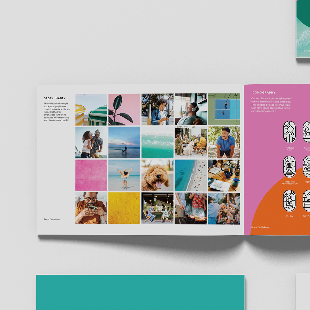 Iconography – Icons can be a great way to draw the viewer’s eye to key amenities and work to showcase the brand’s style and personality. If you don’t have custom icons as part of your brand guidelines, search for stock sets that work within the aesthetic.