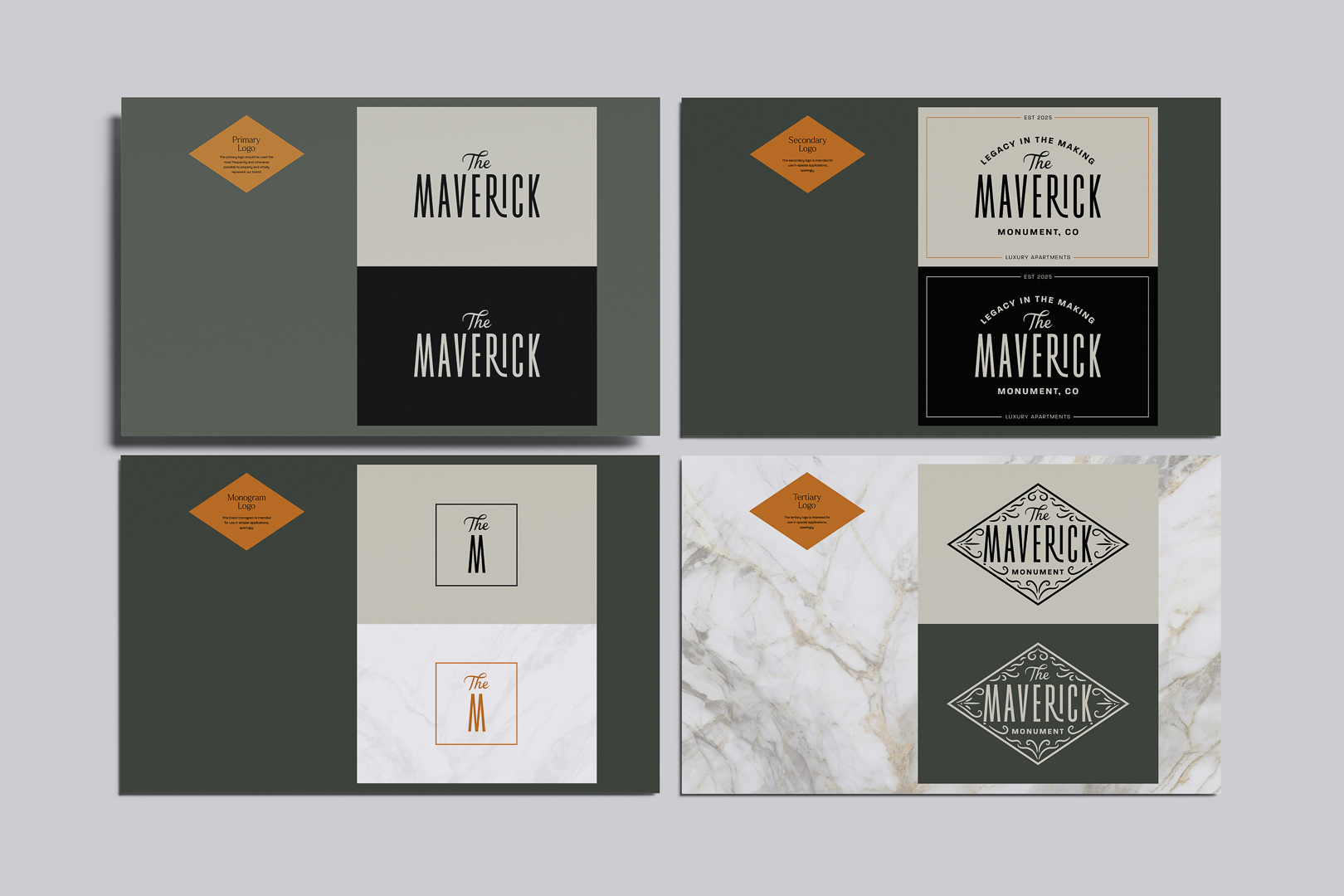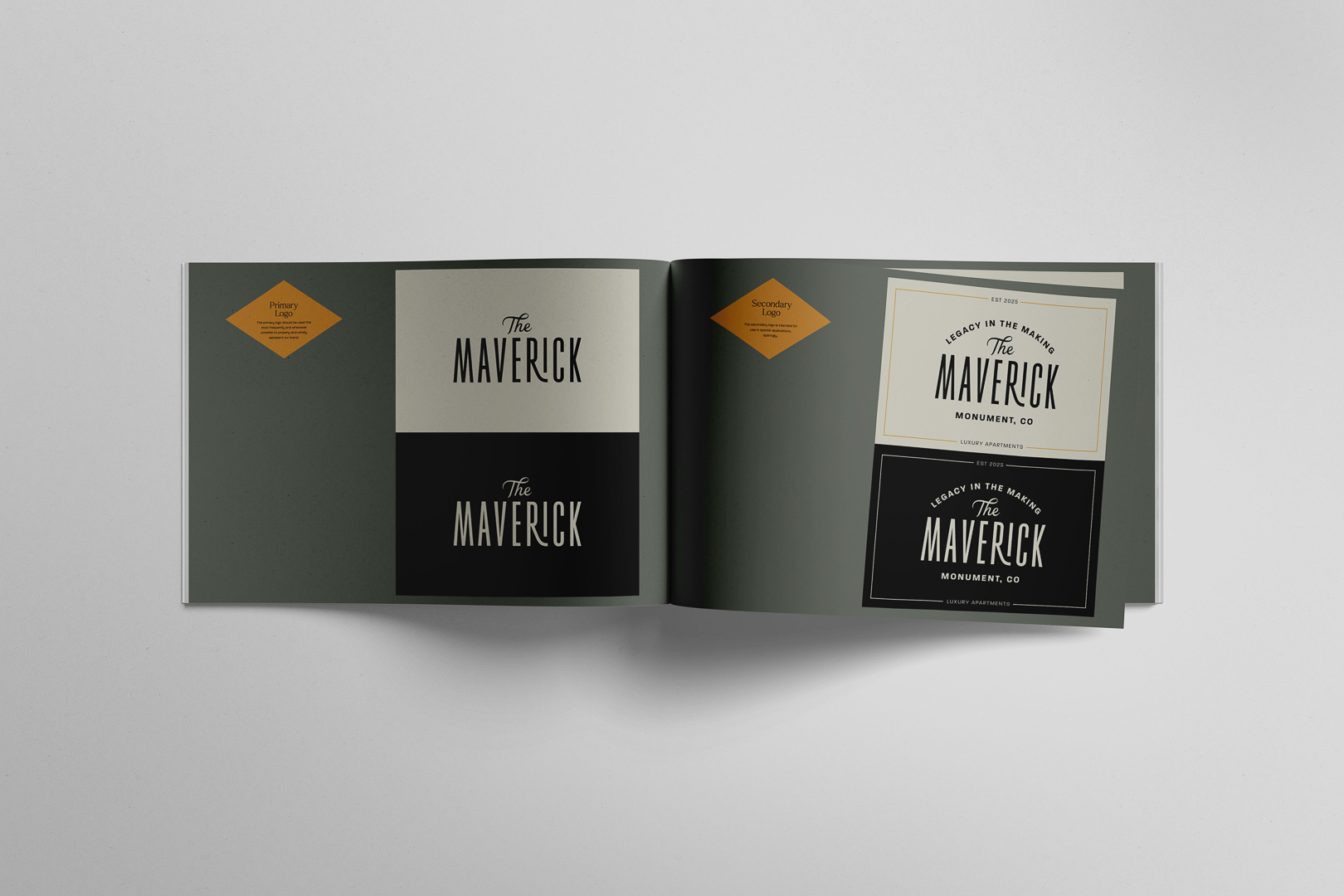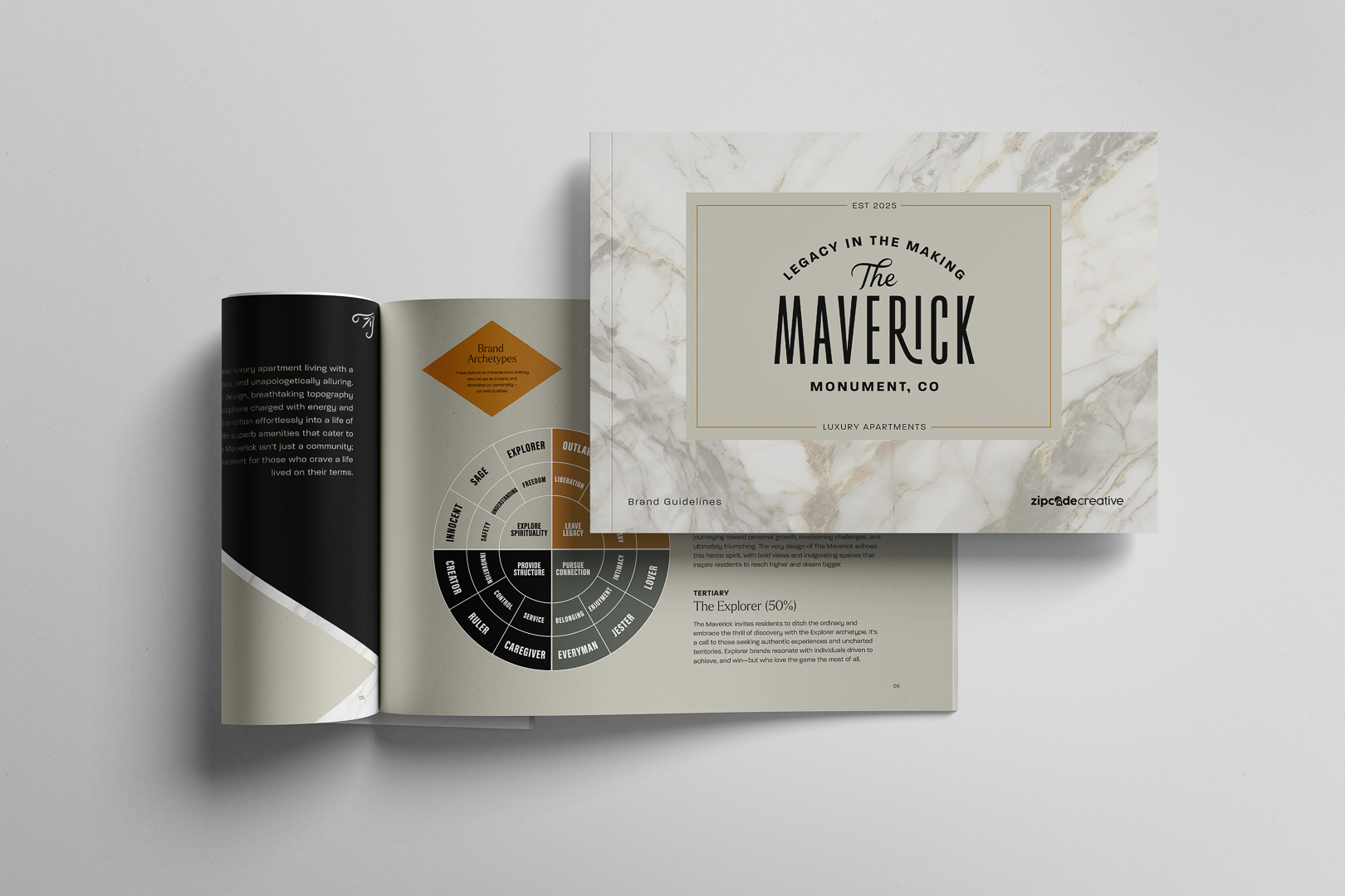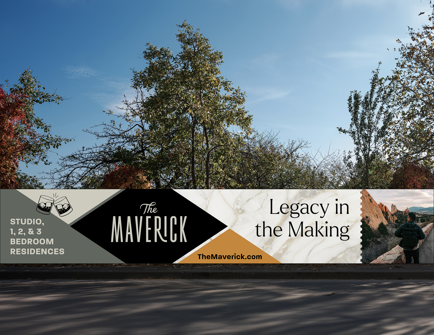 We developed the brand identity for The Maverick, a 276-unit luxury apartment community in Monument, CO. The visual identity pulls directly from the property’s Modern Glam interiors to deliver a cinematic, sophisticated lifestyle expression.