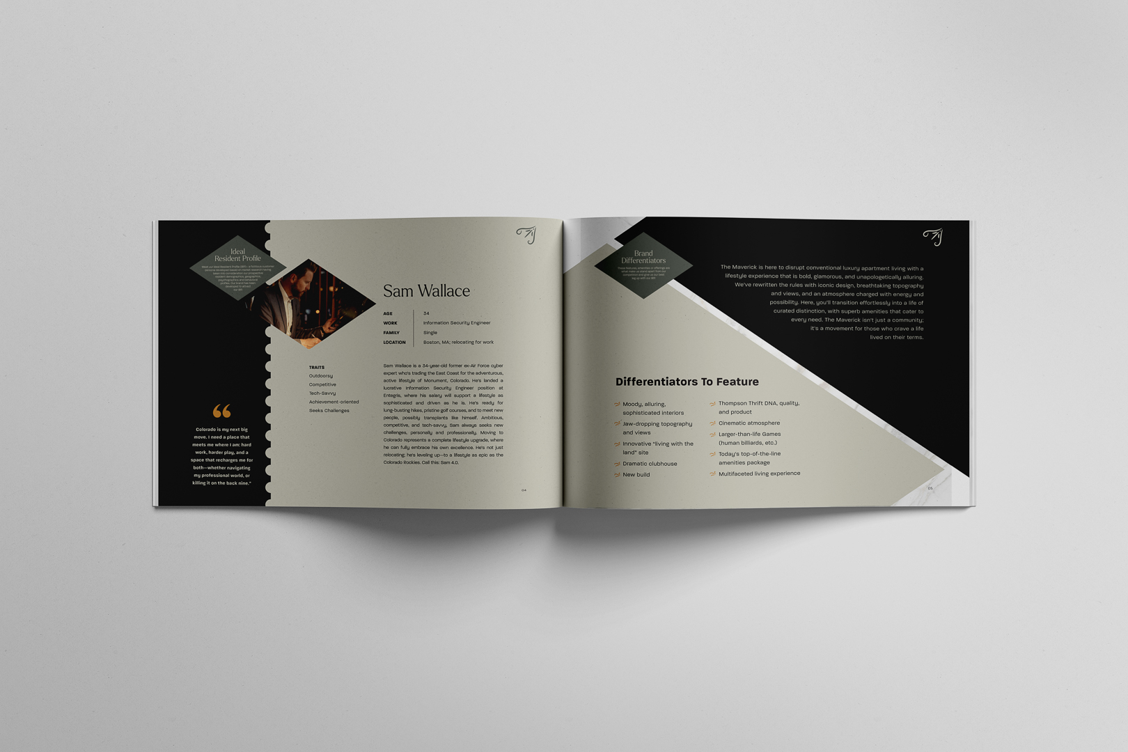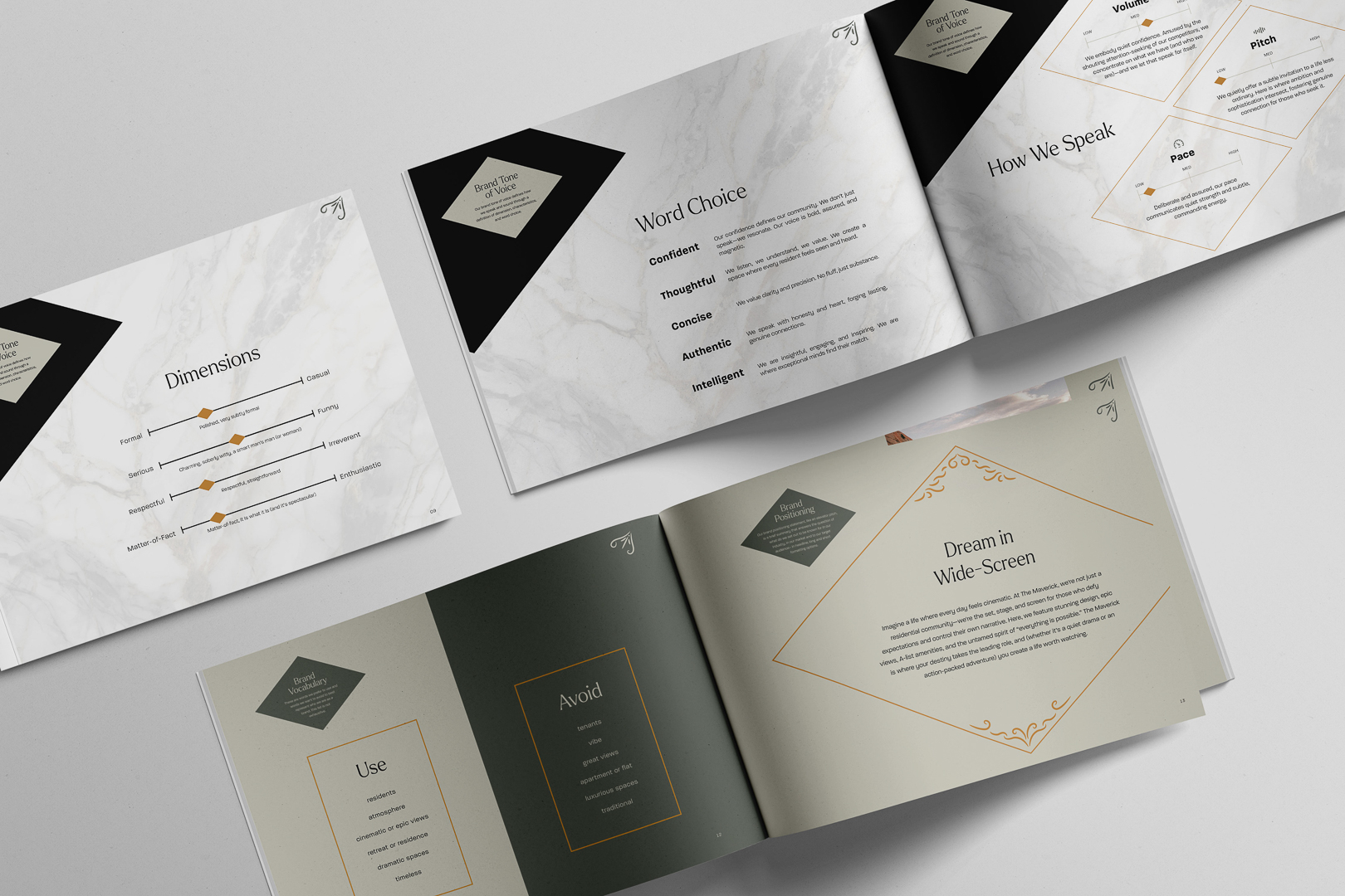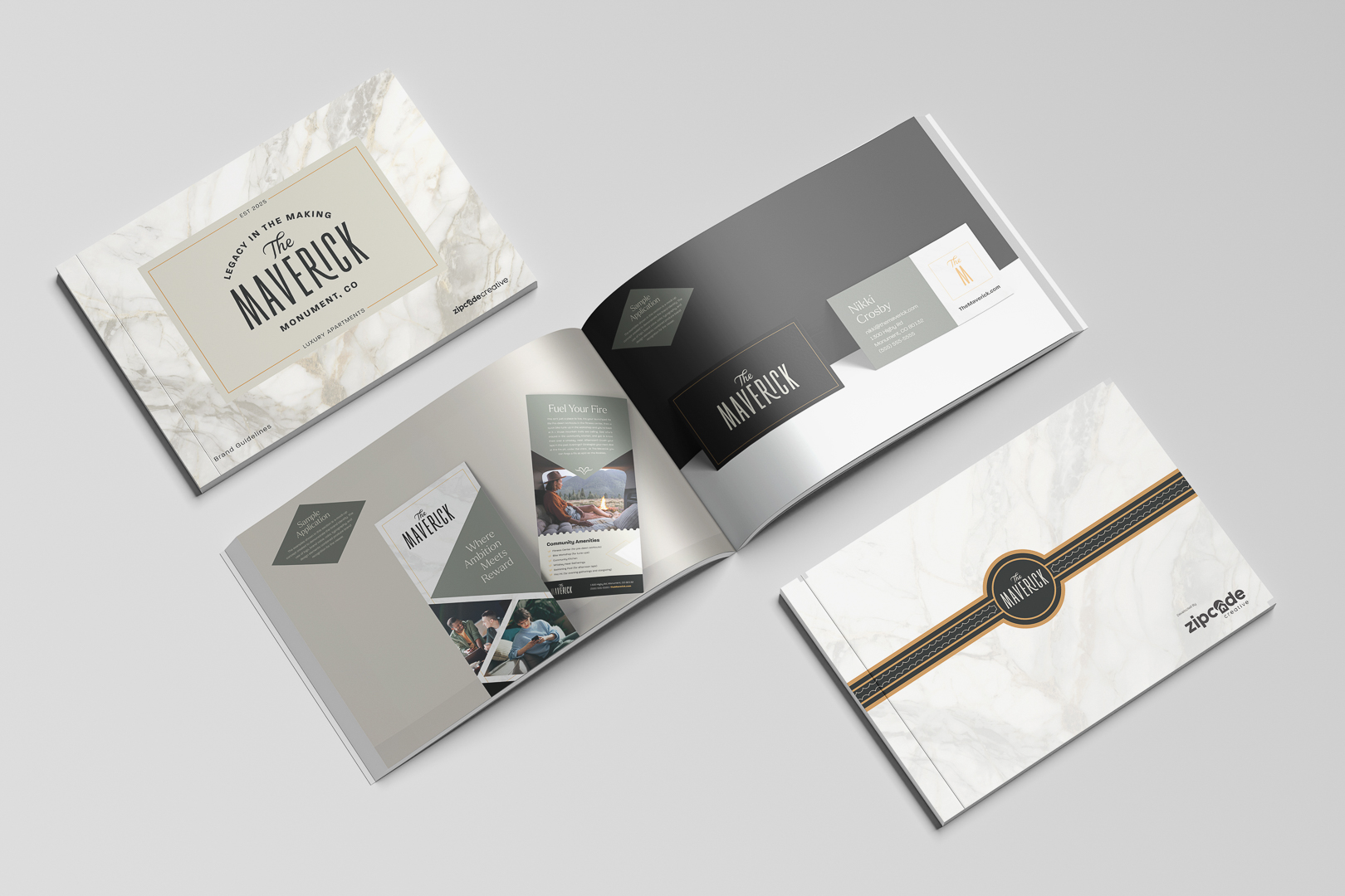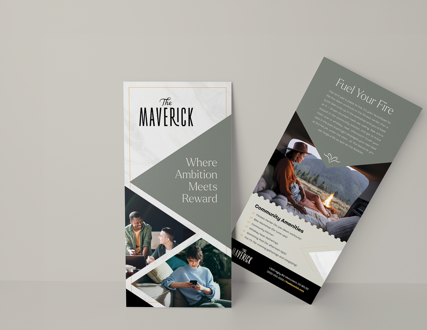 We developed the brand identity for The Maverick, a 276-unit luxury apartment community in Monument, CO. The visual identity pulls directly from the property’s Modern Glam interiors to deliver a cinematic, sophisticated lifestyle expression.
